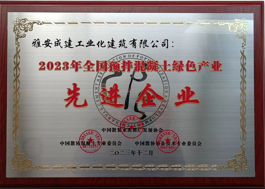 雅安成建工業(yè)化建筑有限公司榮獲 “2023年全國(guó)預(yù)拌混凝土綠…