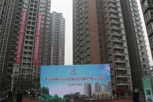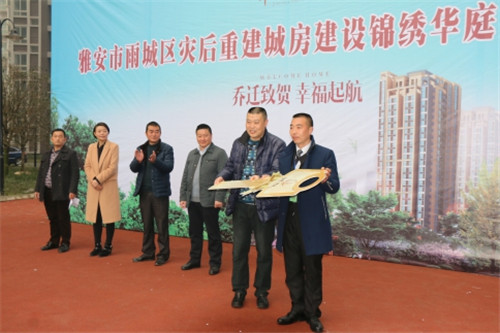 交房儀式上,出席交房儀式的相關(guān)部門負(fù)責(zé)人向付出辛勤努力的建設(shè)者表示崇高的敬意,向喜遷新居的全體居民表示熱烈的祝賀。并指出,安居房建設(shè)工作是一項政策性強(qiáng)、涉及面廣,復(fù)雜又繁重的工作,更是群眾關(guān)心、社會關(guān)注的熱點(diǎn),全力做好這項工作是大家義不容辭的責(zé)任和義務(wù)。在下一步工作中,爭取在2015年12月31日前,所有城房項目將達(dá)到“拆除外架、水電氣通、入戶道路通、完成樣板間、分房到戶、可以內(nèi)裝” 的要求。在既定時間內(nèi),全面完成重建任務(wù),為雅安經(jīng)濟(jì)作出貢獻(xiàn)。