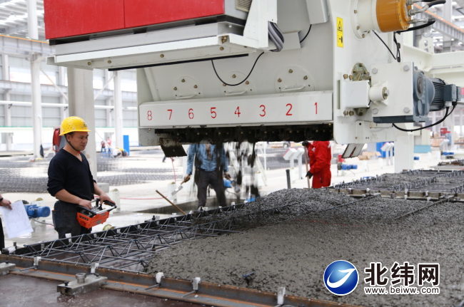 4月9日,雅安成建工業(yè)化建筑有限公司(以下簡稱雅安成建)PC生產(chǎn)線一片忙碌,工人與各類大型器械配合“親密無間”。生產(chǎn)流水線上,經(jīng)鋼筋綁扎、線管預留預埋、構(gòu)件混凝土澆筑等步驟后,一塊塊尚未晾干的疊合板便悄然成型!耙粔K疊合板從最初的拉伸鋼筋到最終的晾干僅需8個小時。”雅安成建技術(shù)負責人楊兵介紹,目前來自于成都周邊新建住宅的訂單讓他既幸福又痛苦,幸福是因為訂單爆滿意味著發(fā)展?jié)摿薮,而痛苦是因為怕無法按時交付!耙驗槟壳斑在試運階段,無法開足馬力全線生產(chǎn)。”