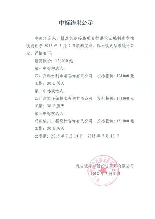 隴西河?xùn)|風(fēng)二橋及其連接線項目行洪論證報告編制中標結(jié)果公示