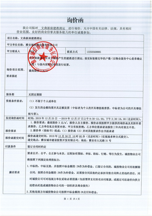 文曲新座建渣清運詢價函.doc