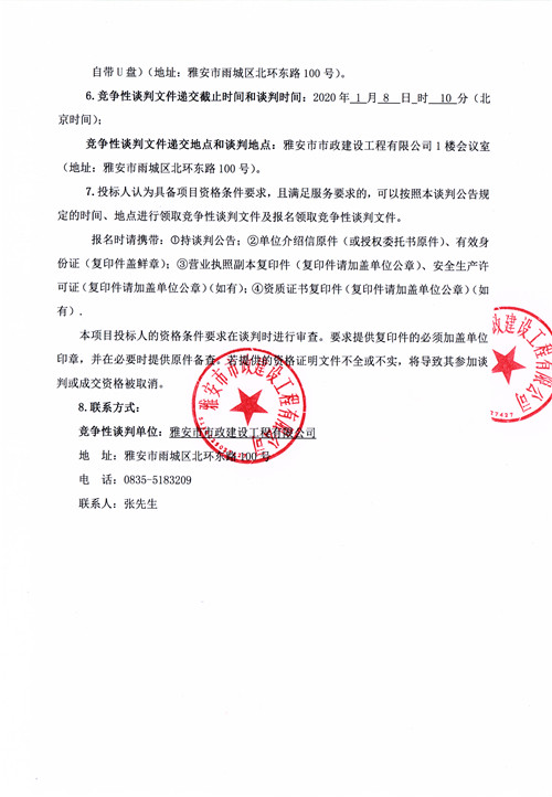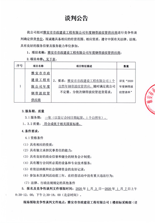 雅安市市政建設工程有限公司年度鋼帶波紋管供應商競爭性談判公告