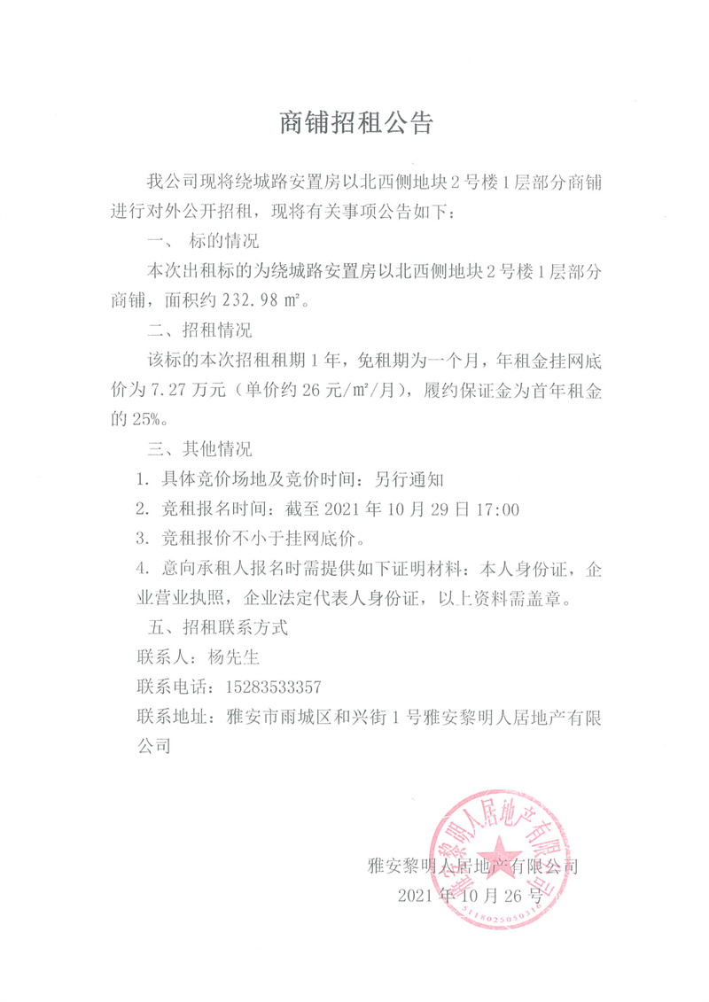 繞城路安置房以北西側(cè)地塊2號樓1層部分商鋪招租公告