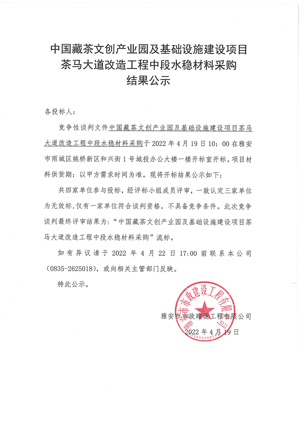 市政公司中國藏茶文創(chuàng)產(chǎn)業(yè)園及基礎(chǔ)設(shè)施建設(shè)項(xiàng)目茶馬大道改造工程中段水穩(wěn)材料采購結(jié)果公示