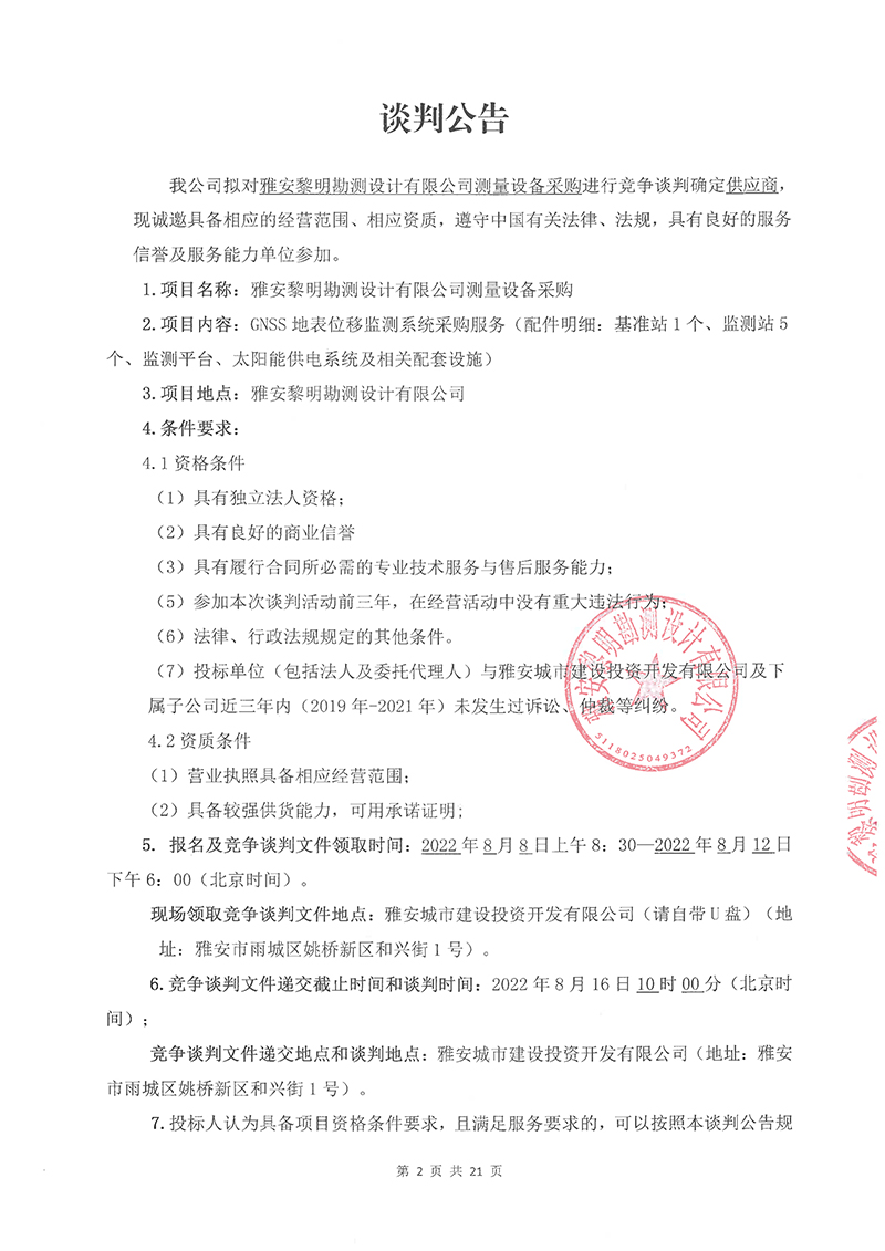 雅安黎明勘測設計有限公司測量設備采購競爭談判文件