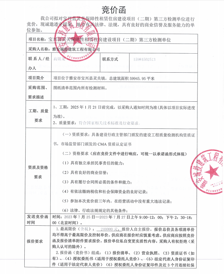 寶興縣靈關保障性租賃住房建設項目(二期)第三方檢測單位競價公告