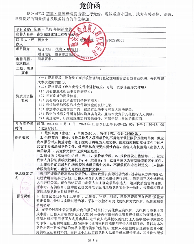花襄·里廢棄鋼筋出售競(jìng)價(jià)公告