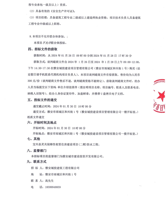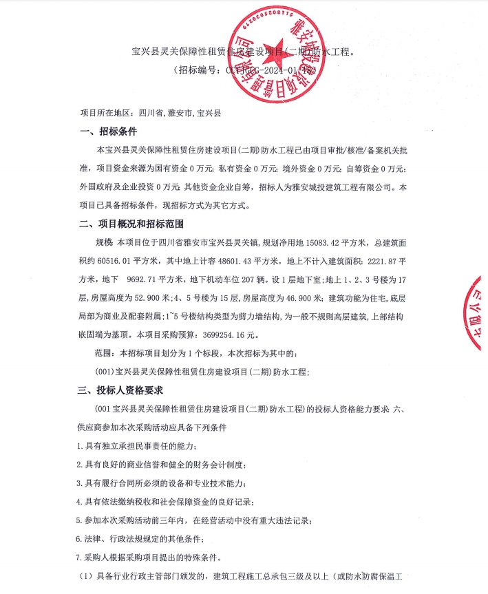 寶興縣靈關保障性租賃住房建設項目(二期)防水工程公告