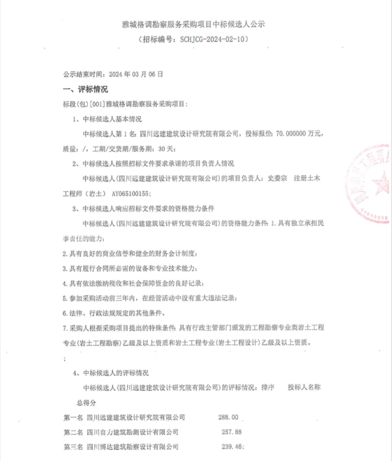 雅城格調(diào)堪察服務(wù)采購項目中標候選人公示