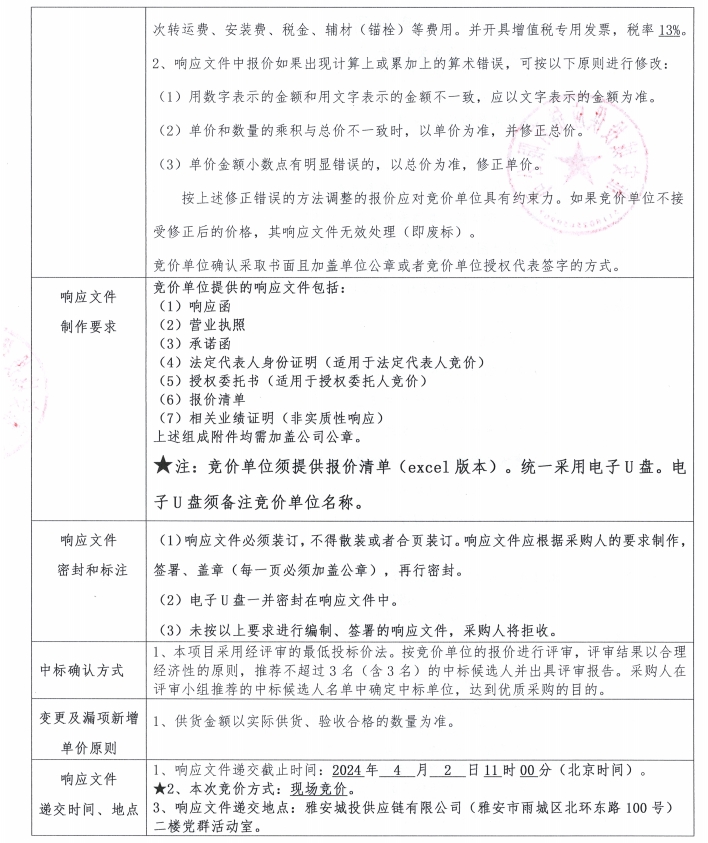響應(yīng)文件格式-蒙頂壹號抗震支架采購