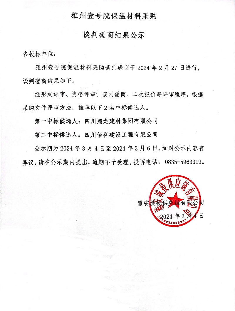 雅州壹號(hào)院保溫材料采購談判磋商結(jié)果公示