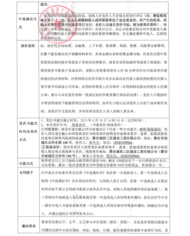 雅安市大興生態(tài)旅游建設(shè)項(xiàng)目4號(hào)地塊水系水池一體化水泵站材料采購(gòu)競(jìng)價(jià)公告