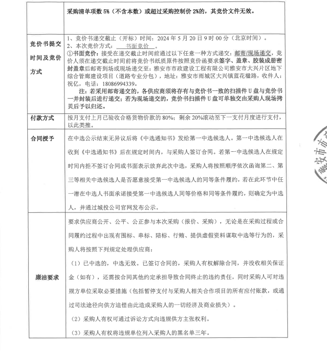 雅安市大興片區(qū)地下綜合管廊建設(shè)項(xiàng)目道路專業(yè)分包欄桿采購(gòu)競(jìng)價(jià)公告