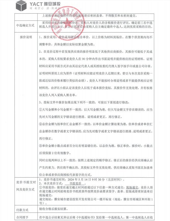 雅州壹號院總坪項(xiàng)目(樣板段)水電材料采購競價公告