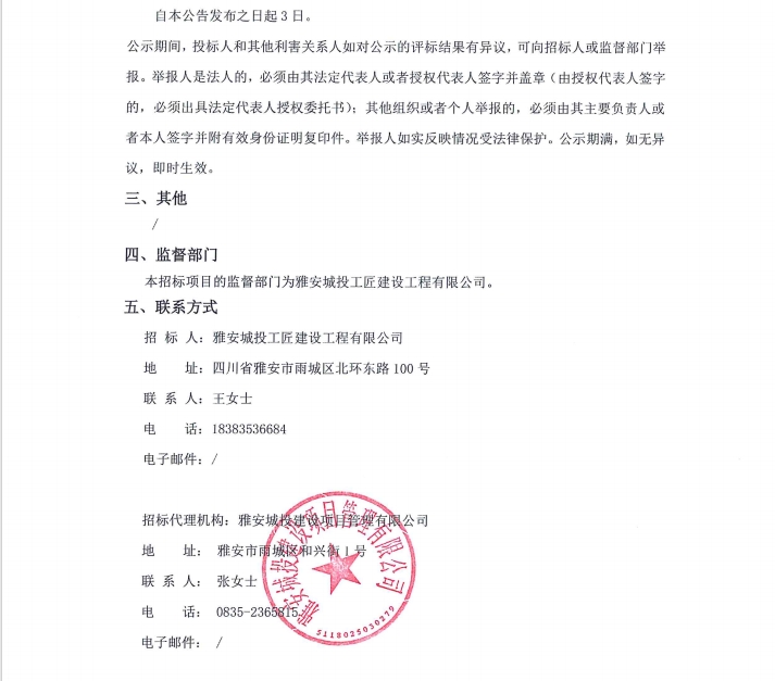 雅安市大興生態(tài)旅游建設項目電梯采購安裝(第二次)中標候選人公示