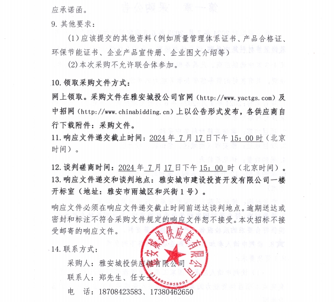 2024年7月-2025年6月雅安城投供應(yīng)鏈有限公司裝飾裝修材料集中采購公告