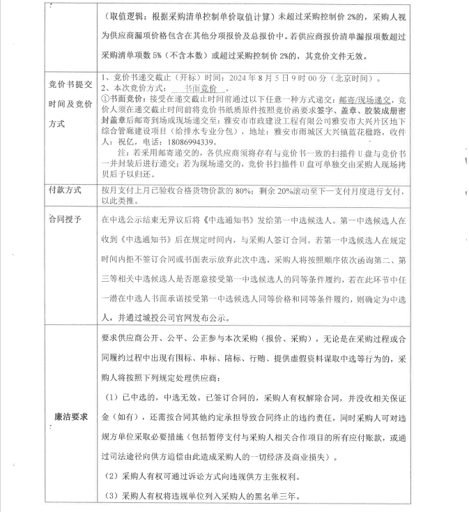 雅安市大興片區(qū)地下綜合管廊建設(shè)項(xiàng)目給排水專(zhuān)業(yè)分包管配件及閘閥材料采購(gòu)競(jìng)價(jià)公告