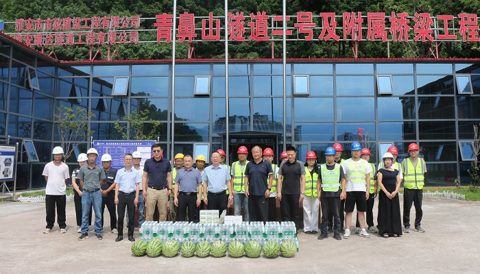 為切實(shí)做好高溫天氣下一線職工的勞動(dòng)保護(hù)和防暑降溫工作,連日來(lái),城投公司黨委書記、董事長(zhǎng)羅倫全,黨委副書記、董事、總經(jīng)理范勇分別帶隊(duì),深入青鼻山隧道二號(hào)及附屬橋梁工程、雅州印項(xiàng)目施工現(xiàn)場(chǎng),親切慰問(wèn)奮戰(zhàn)在酷暑中的一線建設(shè)者。公司黨委委員、副總經(jīng)理茍剛,黨委委員、副總經(jīng)理瞿橫空陪同慰問(wèn)。
