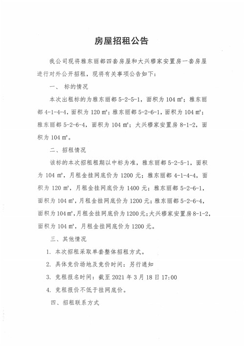 房屋招租公告