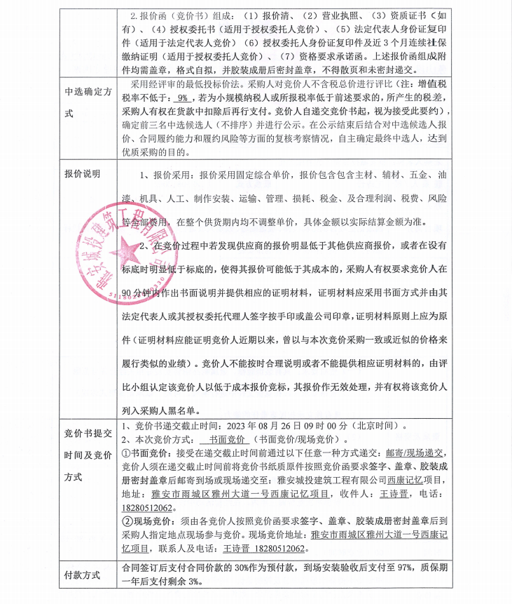 雅安市西康記憶生態(tài)文旅街區(qū)項(xiàng)目一號(hào)地塊項(xiàng)目、雅安市隴西河(青鼻山段)生態(tài)修復(fù)治理工程(一期)鐵質(zhì)欄桿制作安裝競(jìng)價(jià)公告